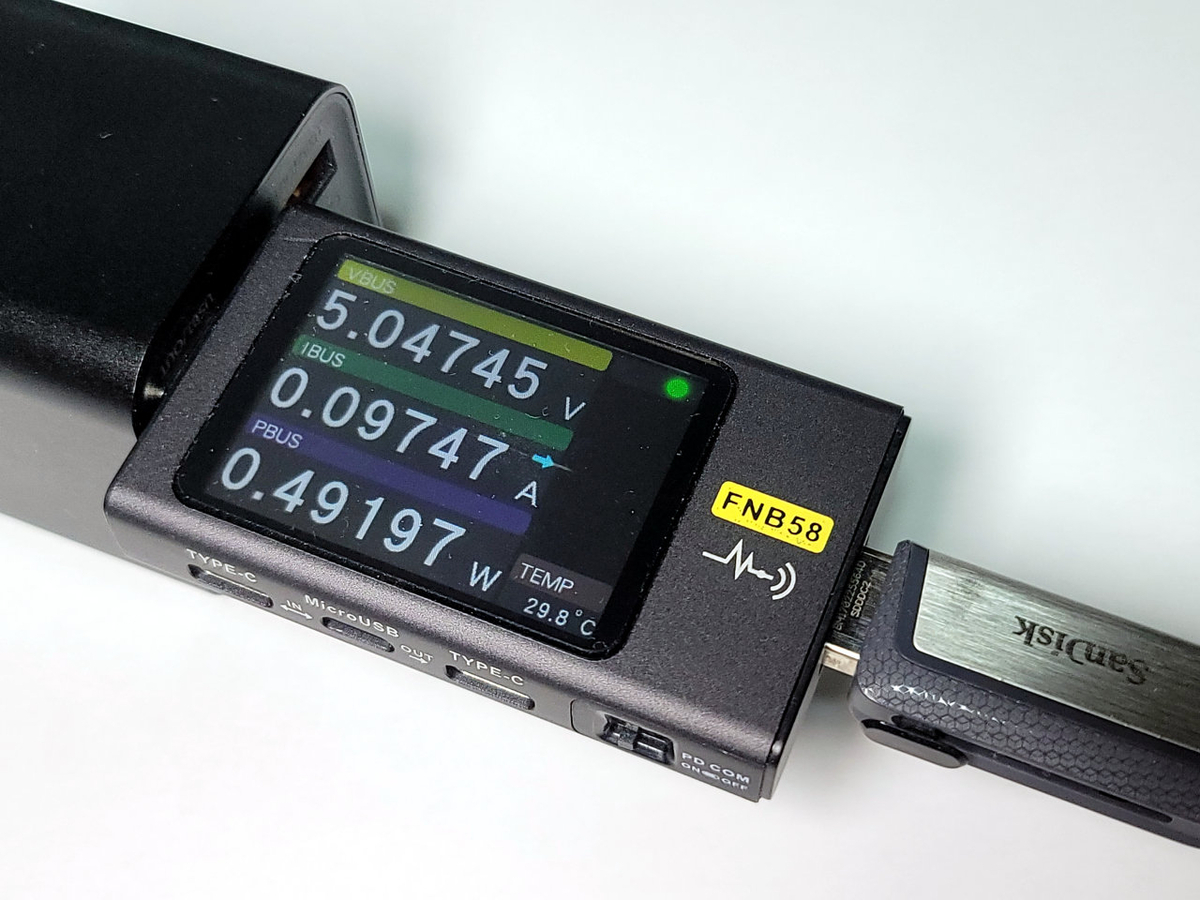この組み合わせをソース側にかませると、ソースに挿した瞬間にホットソケットになり0.9Aが流れている。C-Cケーブルが3Aなので問題ないが、そもそも美しくない。このみっともないケーブルはソース・シンクを入れ換えるとプルアップを検出するので通電しない。必ずソース側に連結した方を挿さなければならない。