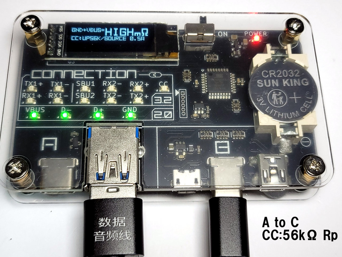 A to CとC to Aという変わった組み合わせをC-Cケーブルでつなぐと、チェッカーは奇妙なケーブルという認識でプルアッププルダウンを検出する。