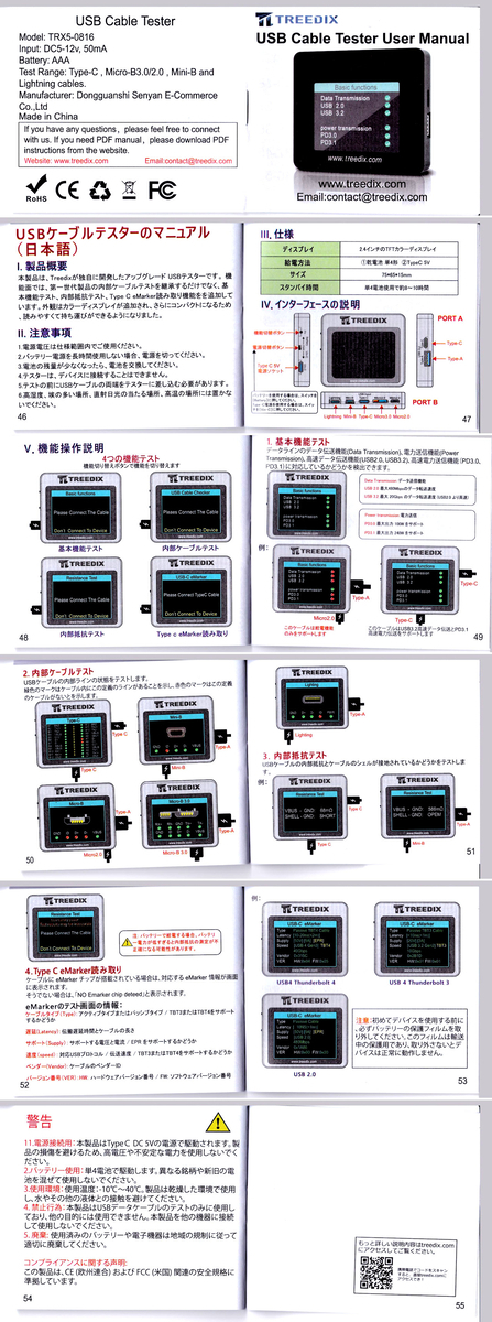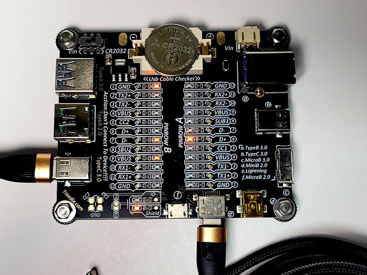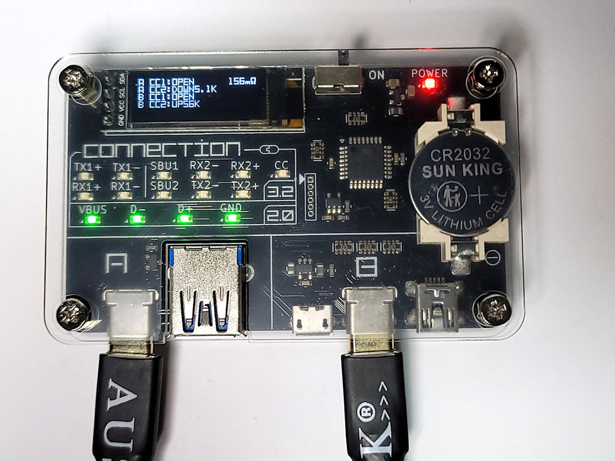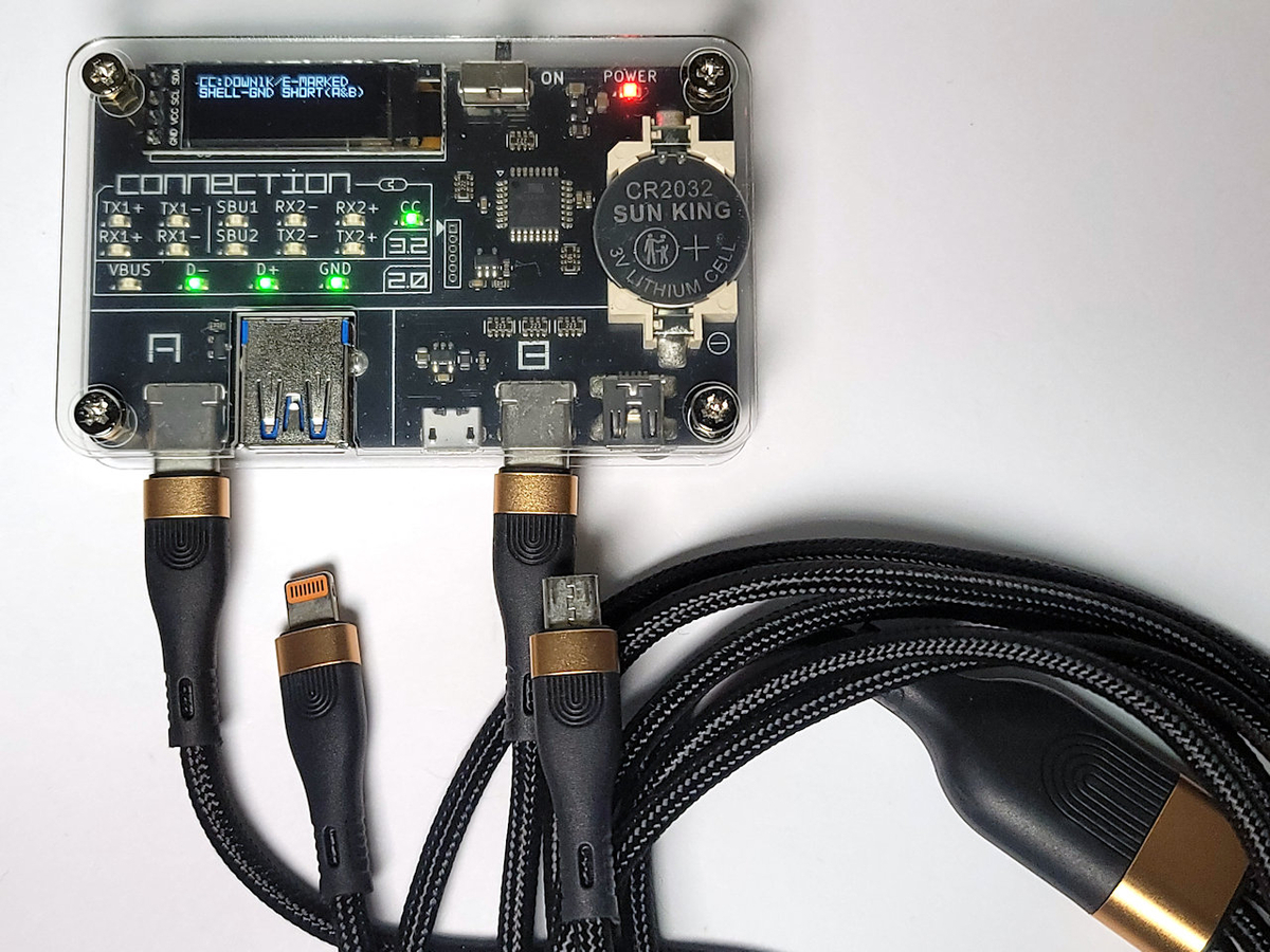これは元々UCC2がL対応していないのでTreedix勝負になる。初代はType-C基準のLED配置なので、それ以外のケーブルは裏面にある読替表を参照しなければならない。後継機の視認性はかなりよく、CUIメインのUCC3もぜひお手本にして欲しい機能改善である。
