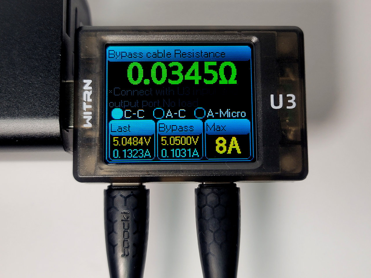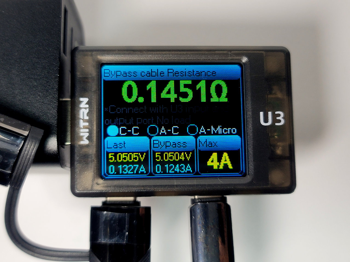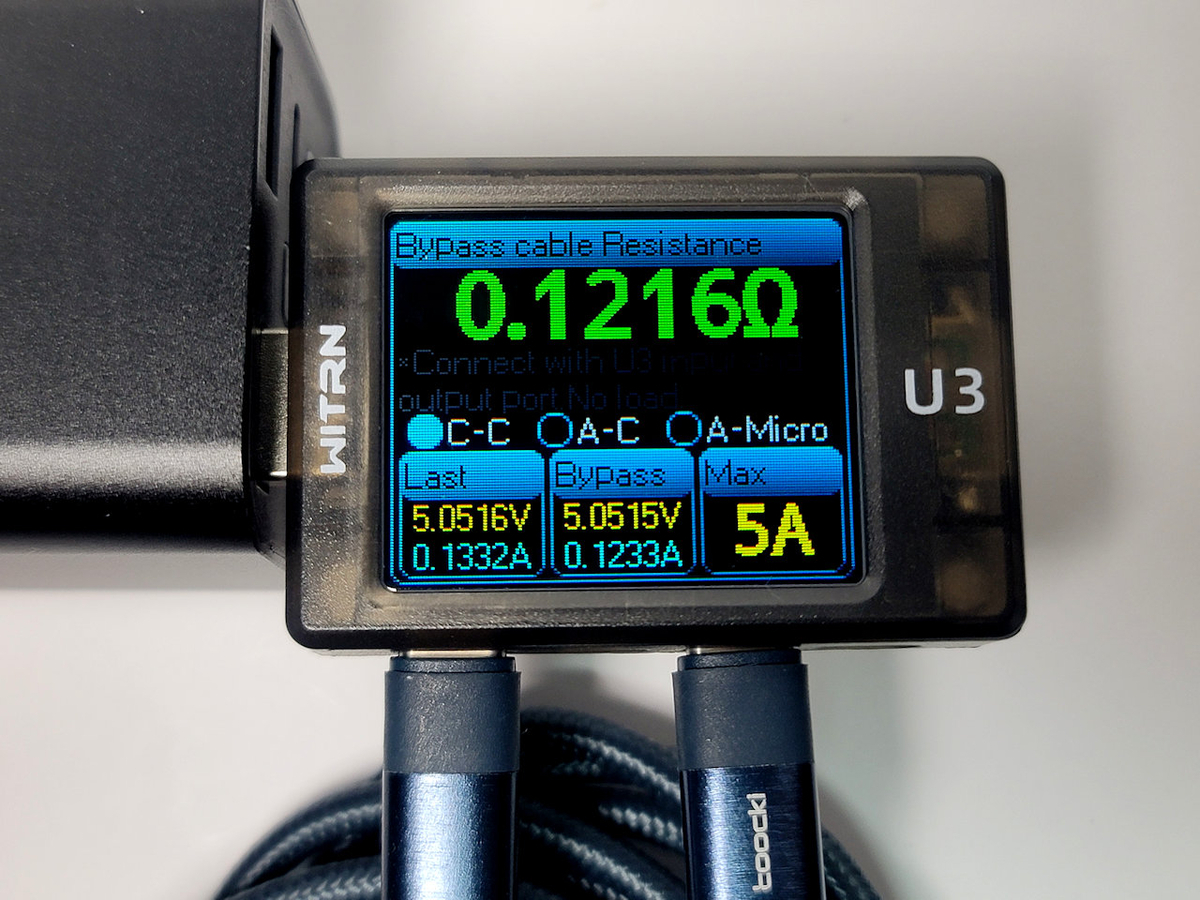 UCTはダメダメだった。U3が一番正解に近く、なおかつ抵抗値から計算で求められるケーブルの許容電流値目安が表示されるのは親切だろう。eMarkerのデータでは虚偽が多いため参考にならない。UCC3にも搭載して欲しい。