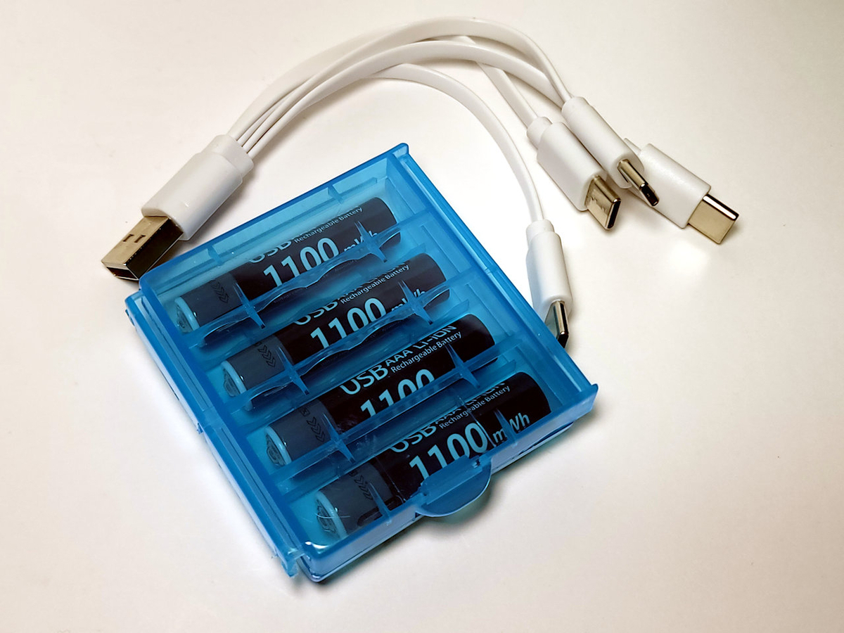 アリエクで単4が4本で1,300円はまぁまぁの高級品になる。4つ股ケーブルが付属している。