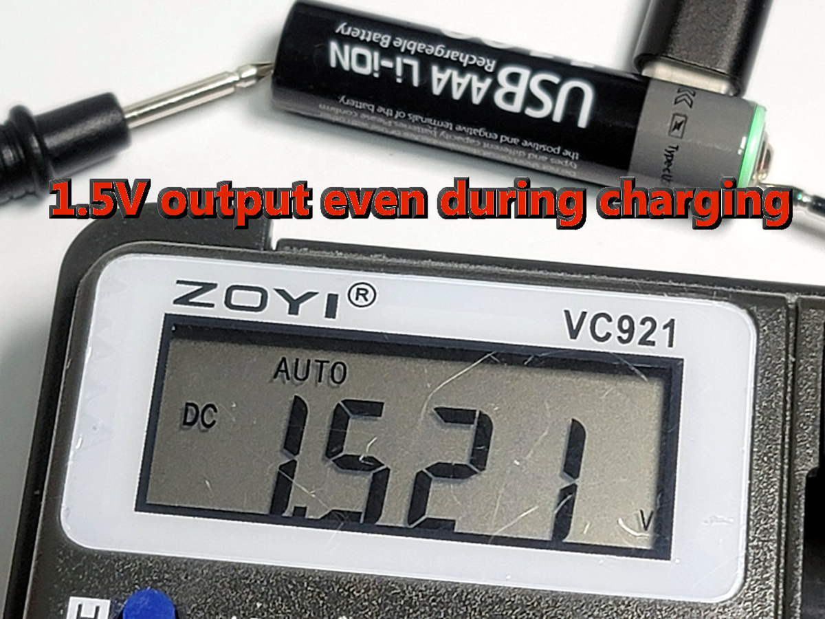 充電中の5V出力は致し方ないものなのか。1.5Vで5Vになるようでは、機器に電池を入れたまま充電することはできない。そもそも、乾電池の形をして5Vを出すなんてことはあってはならないことだ。